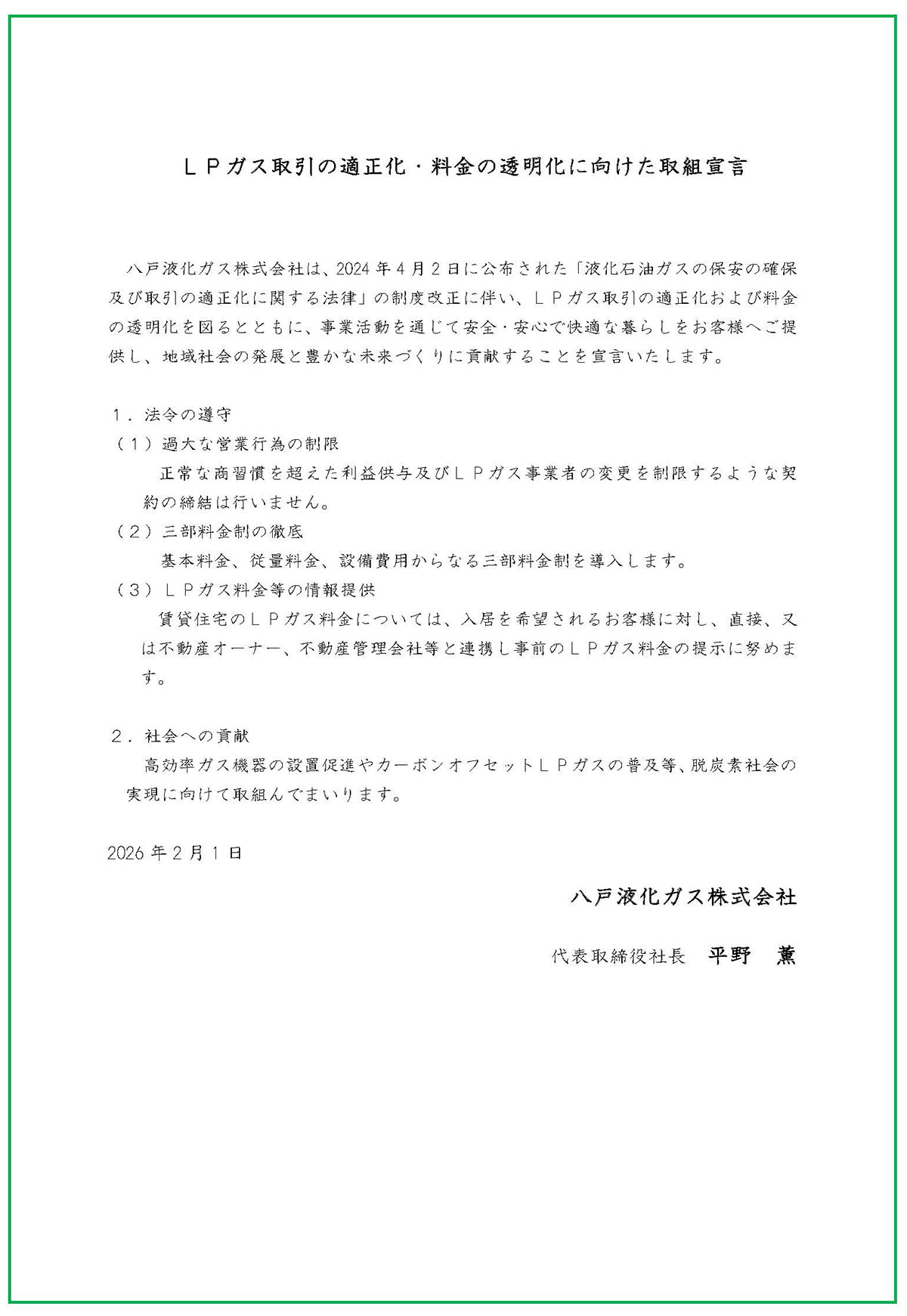LPガス取引の適正化・料金の透明化に向けた取組宣言